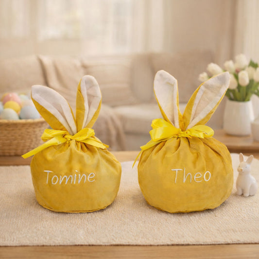 Personlig påskepose med navn – Gul kaninpose
