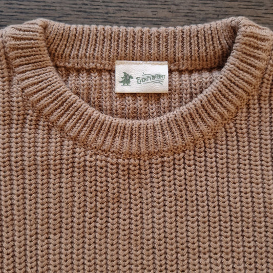 Strikket genser med navn - Brun, 100 % økologisk bomull