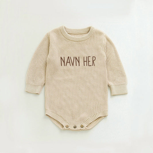 Strikket body i økologisk bomull – med navn (sand)