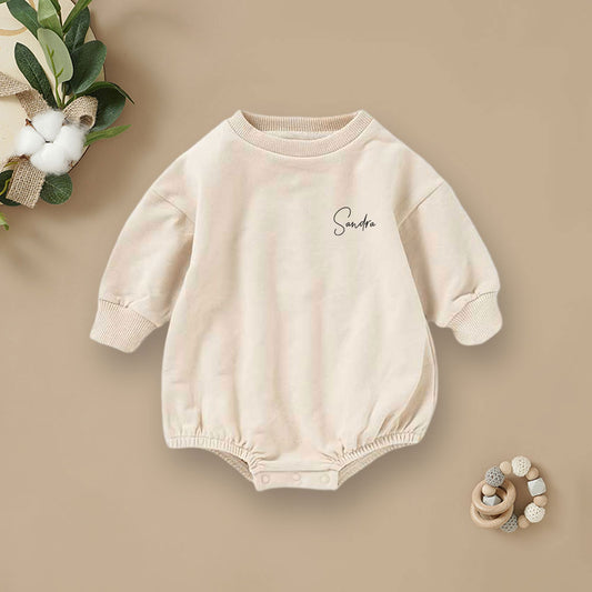 Strikket Genser i Sand – Myk, Oversized og Personlig med Navn
