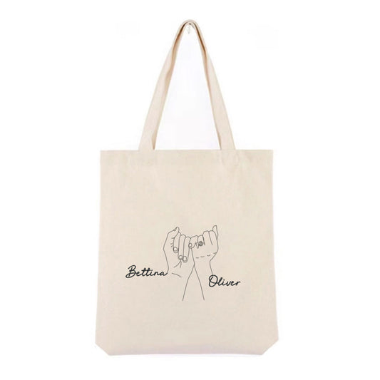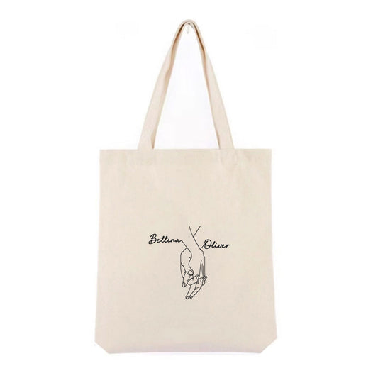 Personlig handlenett i canvas – brodert håndmotiv med to navn