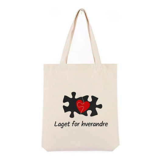 Personlig handlenett i canvas – brodert Valentinsdesign “Laget for hverandre”