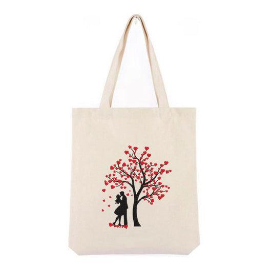 Handlenett i canvas – brodert Valentinsdesign med kjærlighetstre