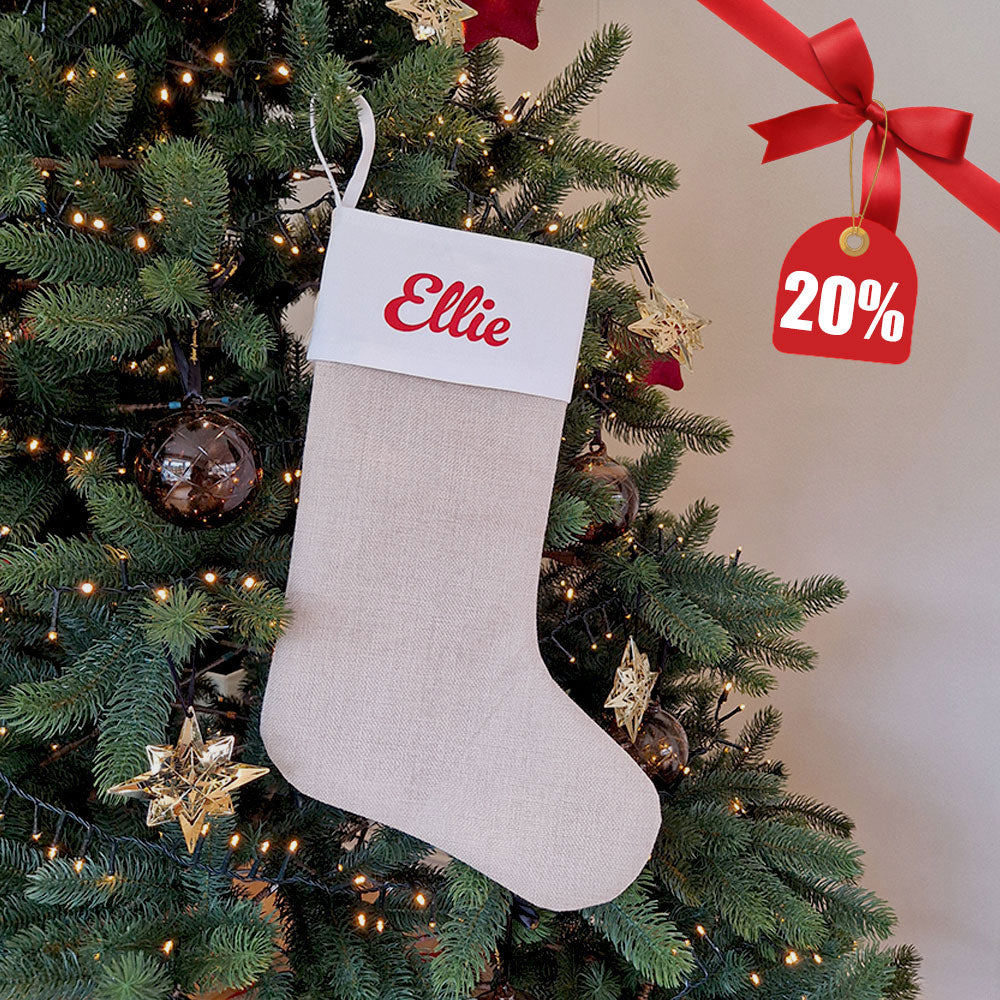 Gjør julen ekstra koselig med vår beige julestrømpe i elegant lin-look – et tidløst valg som passer både moderne og tradisjonelle hjem. Strømpen broderes med navnet du ønsker, og blir en personlig og sjarmerende del av julefeiringen.