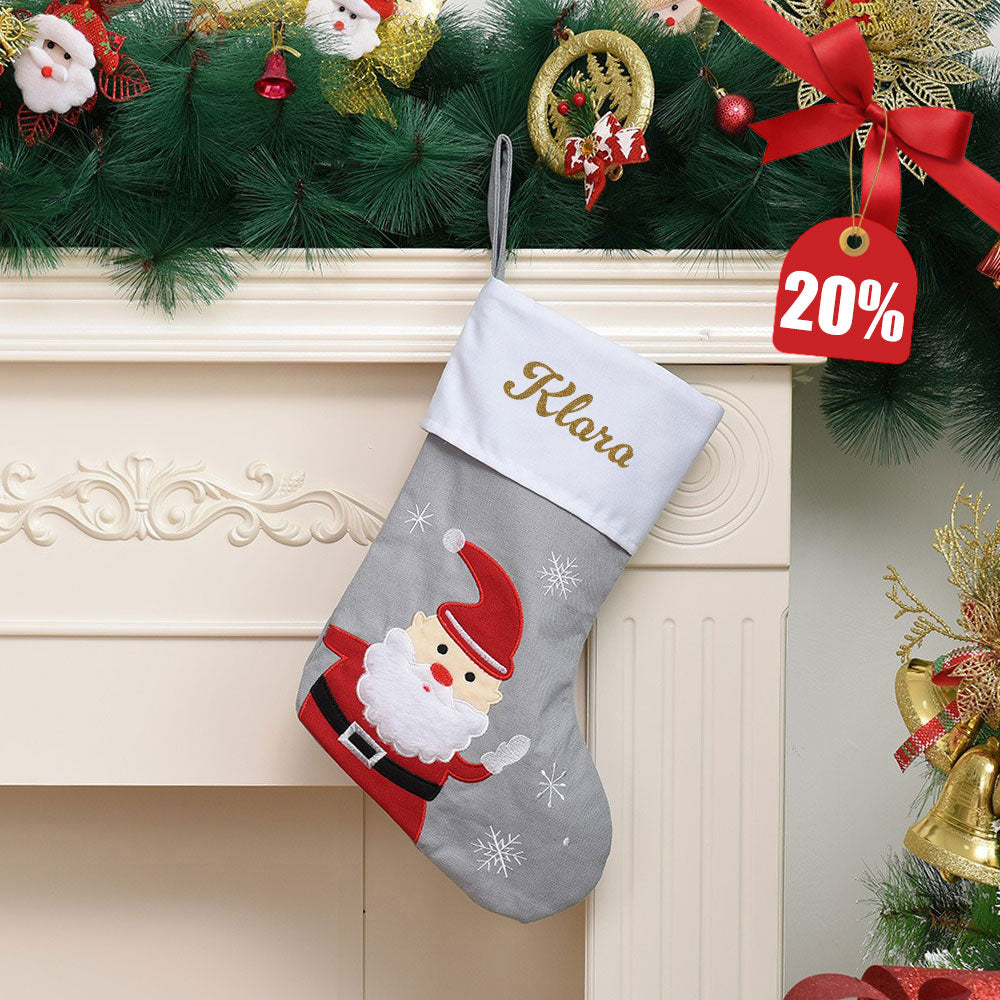 Skap ekte julestemning med vår grå julestrømpe dekorert med en koselig julenisse! Denne personlige julestrømpen broderes med navnet du ønsker, og blir en sjarmerende del av familiens juletradisjoner.