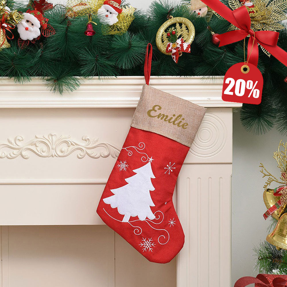 Gjør julen ekstra varm og stemningsfull med vår røde julestrømpe dekorert med et vakkert hvitt juletre! Strømpen broderes med navnet du ønsker, og blir en personlig detalj som sprer ekte juleglede.