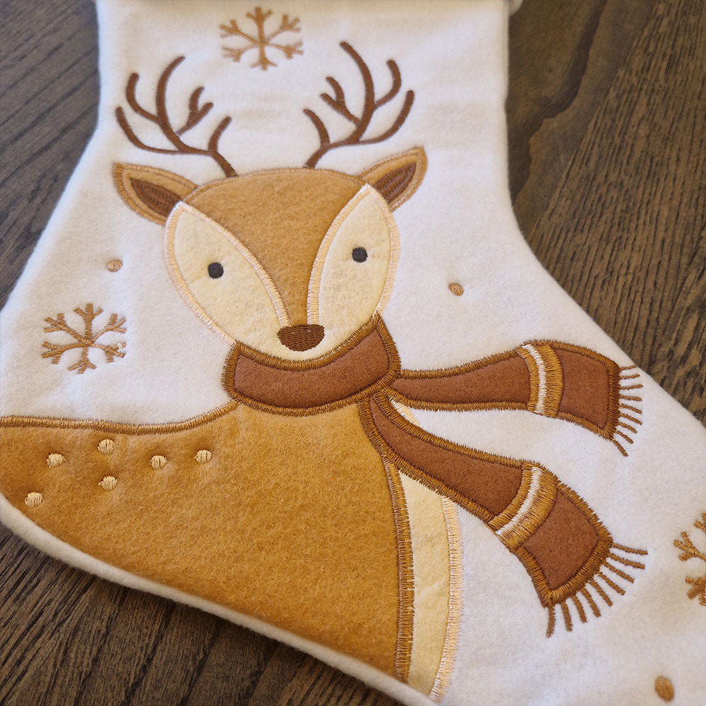Gjør julen ekstra koselig med vår hvite julestrømpe med reinsdyrmotiv. Strømpen er laget i mykt stoff og pyntet med broderte snøfnugg og et søtt reinsdyr i lune vinterfarger. Perfekt for både små og store julegaver!