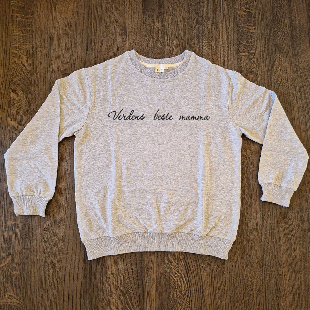 Det broderte designet gir genseren et varmt, tidløst og eksklusivt uttrykk – perfekt som gave til bursdag, morsdag eller som en personlig hverdagsfavoritt.