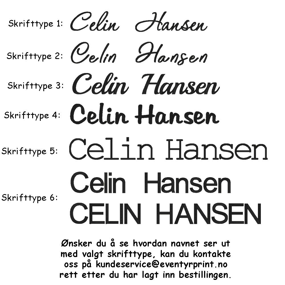 Eventyrprint.no forbeholder seg retten til å tilpasse design og tekst på produkter med personlig tilpasning for å oppnå et resultat som ligger nær illustrasjonsbildet. Dersom produktbildet viser motivet i svart/hvitt, vil opplastede fargebilder automatisk bli omgjort til svart/hvitt. Om det er store endringer blir du kontaktet av oss.
