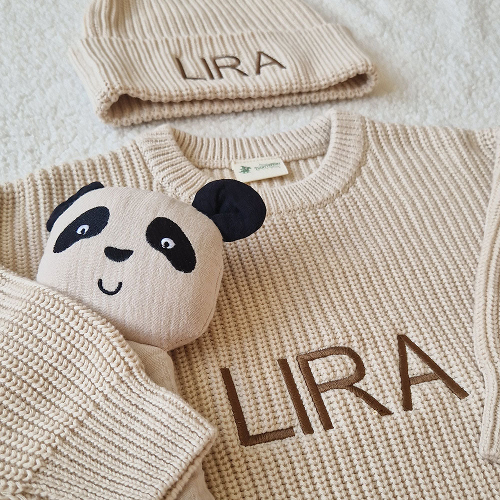 Strikket Genser i Sand – Myk, Oversized og Personlig med Navn
